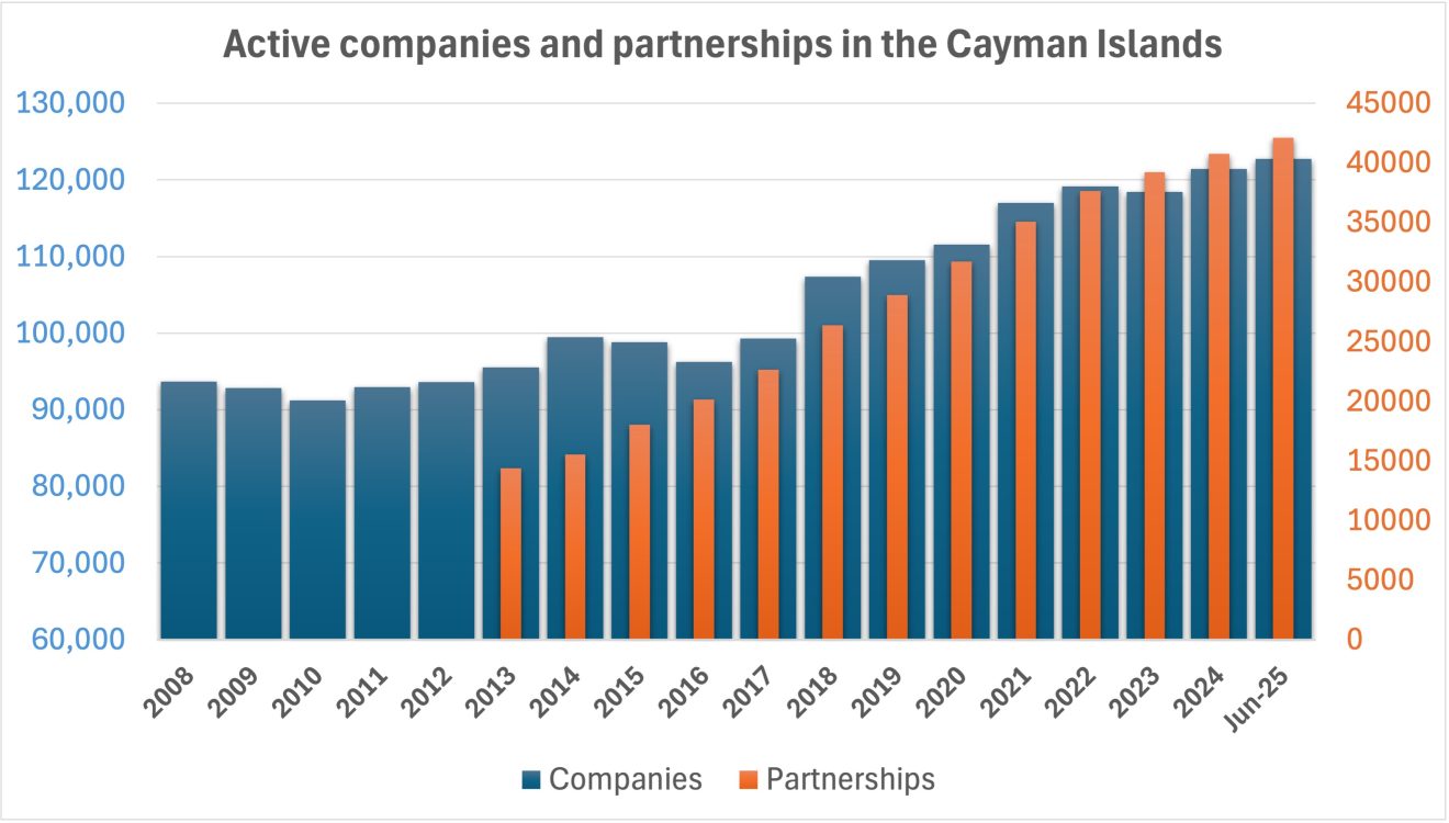 Exempt company fees alone brought in $17.1 million more than during the same period in 2024. The number of active companies has grown from 121,449 at the end of 2024 to 122,733 in the second quarter of 2025. During the first six months, 6,440 new companies were incorporated in Cayman.